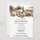 Uma bela e realista aquarela, com um gráfico de mesas e cadeiras de madeira, em uma adega, com vista para além das árvores e do vale à distância. As mesas são fixadas para uma experiência em tudo fresco e as garrafas de vinho num conselho de madeira com cachos deliciosos de uva aparecem no meio da ilustração que aponta para uma deliciosa experiência de queijo, fruta e provando de vinho. Modelos de texto preto editáveis aparecem abaixo da obra de arte cênica em um fundo branco. Esse elegante, na moda e design chic é ideal para um evento de queijo e vinho; para um emparelhamento de vinho em uma fazenda ou para qualquer casal de noiva que pretenda trocar votos em uma das fazendas de vinhas ou vinhas de Itália, França, Portugal, Vale de Napa ou em qualquer região vinícola global.