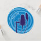 Silhueta de microfone estúdio sobre fundo azul.