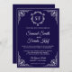 Convite Midnight Blue Ornate Monogram Wedding Invitation