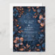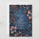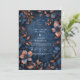 An enchanting deep-navy wedding design wrapped in glowing copper florals and delicate botanical detailing. This immersive, moody palette creates a romantic twilight atmosphere, perfect for elegant evening weddings or couples who love rich, dramatic aesthetics. The ornate frame draws the eye to your names and details, giving the entire piece a luxurious, storybook feel. A sophisticated choice for modern romantics who want their celebration to feel timeless and striking.