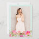 Torne a sua doce celebração de 16 anos realmente especial com o nosso Convite Romântico à Palha Rosa Pintado pela Mão! Este convite bonito e chic apresenta uma bela borda de flores rosa pintadas à mão e folhas verdes exuberantes, criando uma encantadora e vibrante cena de jardim, e adicione sua foto no fundo. A delicada design de aquarela adiciona um toque caprichoso e romântico sobre um fundo verde de menta editável. A palavra "Dezesseis" destaca-se numa luxuosa letra falsa do guião dourado, expondo elegância e sofisticação. Perfeito para uma na moda e elegante festa do jardim de Verão Sweet 16, este convite combina elementos florais artísticos com a tipografia moderna, fazer que seja uma escolha excepcional para celebrar este marco significativo.
