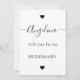 Cartão de convite para a apresentação de propostas minimalistas elegantes, preto e branco. Peça a sua amiga, bestie, irmã ou outra senhora importante na sua vida para ser sua dama de honra no seu dia especial, com este simples e adorável convite.