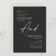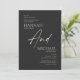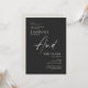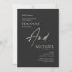 Estes convites formais de casamento de 5" x 7" apresentam um design de estilo minimalista com a inscrição de marfim em fundo preto com os seguintes marcadores, honrados, nome pai, introdução, casal de casamento primeiro e sobrenomes, dia da semana, data, hora, local, endereço do local e recepção.