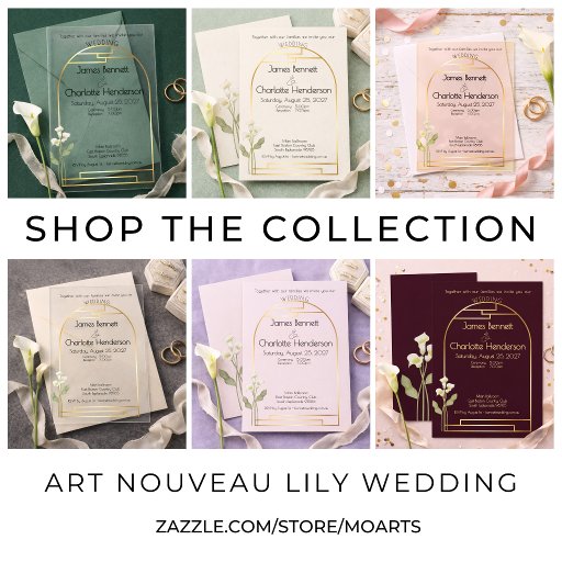 Convite Minimal Art Nouveau Gold Arch Lily Rust Wedding