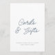 Elegant and timeless wedding sign designed in a soft dusty blue script on a clean white background. This minimalist “Cards & Gifts” sign is perfect for guiding guests to place their envelopes and presents in one designated area.