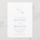 Convite Minimal Dusty Blue Monogram Wedding Invitation