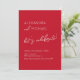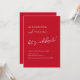A refined minimalist engagement invitation design featuring elegant typography on a red solid background. The clean layout and timeless lettering create a sophisticated aesthetic that feels modern, calm, and effortlessly stylish. Designed for couples who appreciate simplicity and balance, this typography-focused design delivers a polished, graceful look perfect for a contemporary engagement celebration.