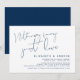 Este é o convite para a festa de casamento fugitivo, com design de letra Azul Marinho minimalista (Nada de extravagante, apenas amor).