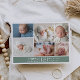 Celebrate the arrival of your little one with this minimalist baby photo collage announcement card. The design features refined handwritten typography on a green and white background, baby photos, hearts and a clean layout, which captures the beauty of simplicity. This template is perfect for announcing your newborn’s name, birth date, weight, and time. This card complements any aesthetic from modern chic to classic understated elegance. Whether you’re welcoming a baby girl or baby boy, this template offers a beautiful way to introduce your newest miracle to the world.