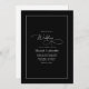 This striking minimalist black and white wedding invitation features a bold black background with elegant white script and refined serif typography. A thin border adds a timeless touch, while a QR code on the back allows guests to easily access the couple’s wedding website for additional details. Perfect for modern, classic, or formal weddings, this sleek and sophisticated design is effortlessly chic. Easily personalize with your wedding details and photo for a refined and stylish announcement.