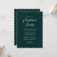 Minimalist green Christmas party invitation featuring falling snow. Easily personalize this green invitation with your party details.