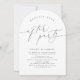 Elegant minimalist modern chic script design with timeless serif font in black and white, simple and clean. Great arch happily ever after party invitation for romantic minimalist wedding, modern classic wedding, simple luxury wedding.