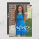This design features a graduation photo invitation picture, with a modern graduate class of your year, simple elegant gold typography, great for high school or college commencement, with trendy script calligraphy, a congratulations graduate class year, with a modern minimalist design. a stylish grad party, a vertical template full bleed edge