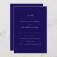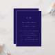 A minimalist wedding invitation in rich midnight blue with clean white typography and a refined monogram. The deep hue and modern layout create an elegant, timeless look perfect for formal or contemporary celebrations. Ideal for couples who love understated sophistication with a bold, modern twist.