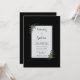 Capture the serene, clean aesthetic of a Scandinavian landscape with this high-contrast botanical design. A brilliant white rectangular card sits at the center, anchored by a deep, velvety matte black background that makes every detail pop. In the opposite corners, delicate sprigs of dark forest green fern reach inward, accented by tiny, dainty white berries for a touch of organic texture. This minimalist composition evokes a sense of modern sophistication and quiet woodland beauty, prioritizing sharp monochrome lines and natural grace for a truly timeless look. This invitation is the ideal match for a black-tie winter wedding, a modern minimalist ceremony, or a serene Nordic-inspired woodland event. The bold contrast is perfect for couples hosting an evening gala in an architectural venue or an intimate forest gathering where the focus is on natural, understated elegance. It sets a formal yet grounded tone that works beautifully across monochrome or deep green color palettes.