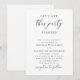 A modern wedding invitation with a clean layout and a bold, celebratory touch. A script accent highlights part of the phrase “let’s get this party started,” adding a fun, energetic feel, while the structured typography keeps the design polished and easy to read. The black and white palette creates a timeless look that works especially well for minimalist weddings and black tie celebrations. The layout keeps all key details clear without feeling crowded, making it easy for guests to read at a glance. Available as both a printed card and a digital download.