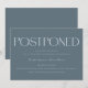 Adiar um grande evento como o seu casamento pode ser estressante, mas você ainda pode olhar na moda com esta mudança moderna e minimalista de planos de modelo. Ele diz "adiado" em na moda e fonte notável no topo, seguido de suas informações de eventos e arrependimentos. O fundo é azul ardente.