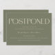 Adiar um grande evento como o seu casamento pode ser estressante, mas você ainda pode olhar na moda com esta mudança moderna e minimalista de planos de modelo. Ele diz "adiado" em na moda e fonte notável no topo, seguido de suas informações de eventos e arrependimentos. O fundo é verde sábio.