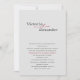 Apresente seu casamento com um toque de elegância eterno usando nosso "Elegante Minimalista com o Convite de Casamento de Acentos Vermelhos". Este design elegante e simples apresenta os nomes dos casais em uma fonte de máquina de escrever clássica em preto, unida por um símbolo "e" vermelho rico. Os detalhes do convite são apresentados em uma fonte clara de bonés pretos, com os nomes dos casais realçados em vermelho para um efeito de greve contra o fundo da cinza de luz. O verso do convite continua o tema elegante com fundo vermelho ousado, mostrando os nomes dos casais e o símbolo "e" do rico em arranjo sofisticado. Perfeito para casais que buscam um convite chic e minimalista com um toque de charme de safra.