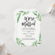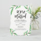 Esses convites de cerimônia pós-casamento em estilo moderno e minimalista apresentam um fundo branco limpo com folhas de aquarela verde e tipografia preta.