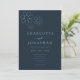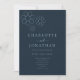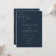 Lindo padrão geométrico retro minimalista de margarida com tipografia elegante em azul naval e azul claro convite de casamento. Margaridas simples em azul claro arte de linha retro dos anos 70 simplista em um fundo burgundy. Obra de arte minimalista original da artista Catherine Sweetman