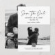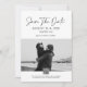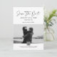 Este editável salvamento da data modelo é um moderno anúncio de casamento de fotos em preto e branco com tipografia minimalista, perfeito para casais que procuram um na moda e fácil de personalizar design.