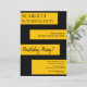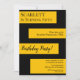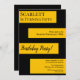 Este elegante convite de Aniversário preto e dourado é perfeito para um Aniversário moderno. o simples design apresenta uma elegante caligrafia negra em listras douradas sobre fundo preto.