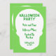 Design simples e minimalista de uma silhueta branca de crânio num fundo brilhante verde limão. Perfeito para festas de Halloween ou festas de aniversário temidas assustadoras entre outras celebrações.