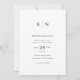 Estes elegantes e modernos convites para o casamento apresentam um simples design de texto preto e branco que exumenta o estilo minimalista. Adicione suas iniciais ou monograma para torná-las completamente suas. A parte de trás do convite é preto sólido.