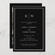 Estes elegantes e modernos convites para festas de noivado apresentam um simples design de texto minimalista preto-e-branco, com um quadro clássico na fronteira. Adicione suas iniciais ou monograma para torná-las completamente suas. A parte de trás do convite apresenta a sua foto pessoal favorita, além de um código QR digitalizável.
