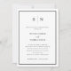 Estes elegantes e modernos convites para janto de ensaio de casamento apresentam um simples design de texto minimalista preto e branco, com um quadro clássico na fronteira. Adicione suas iniciais ou monograma para torná-las completamente suas.