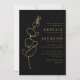 Este convite de casamento simples e elegante apresenta um desenho gracioso de um eucalipto em folha de ouro. Personalize o texto dourado com os primeiros nomes da noiva e do noivo em letra serif e o texto restante em sans serif e script de escrita manual em fundo preto. A parte traseira da placa é preta e sólida.