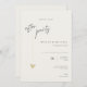 Este convite de festa de feliz para sempre minimalista e elegante é perfeito para uma festa de casamento. O design apresenta uma fonte manuscrita e um design minimalista moderno com um coração dourado. Você pode alterar os nomes, local e data do casamento e outros detalhes, basta clicar em «Personalizar».