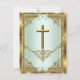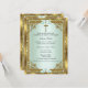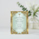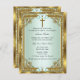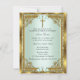 Convite Mint Dourado Pearl Damask Cross Baptism Christenin