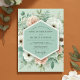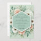 Delicate mint green hues embrace a cascade of soft peach and creamy white blossoms. This ethereal design evokes a sense of tranquil romance with its gentle floral artistry. Perfect for a dreamlike occasion.