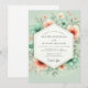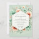 Delicate blooms in soft mint and coral hues create a dreamy, ethereal atmosphere. This design captures a whimsical and romantic mood with its painterly floral arrangements and subtle greenery. Perfect for a lighthearted and enchanting occasion.