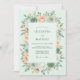 This design features soft mint green tones adorned with a lush arrangement of peach roses and sage green succulents. Delicate white blooms and silvery eucalyptus leaves add a touch of romance and freshness. The palette of pastel colors creates a serene and airy mood for a spring or summer union.