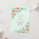This design features a refreshing mint green background adorned with soft watercolor peach anemones. Delicate sage green leaves and berries create a lush, airy aesthetic perfect for a seasonal spring event. The romantic color palette evokes a sense of serenity and natural beauty. These artistic floral elements wrap gracefully around the composition.
