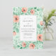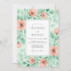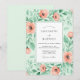 A soft and romantic watercolor design featuring delicate peach roses nestled among lush mint green foliage. The botanical artwork creates an airy, fresh atmosphere ideal for a warm season nuptial. Vivid leaves and blooming ranunculus petals provide a serene and elegant aesthetic.