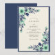 This design features delicate watercolor ranunculus blossoms in a soft mint green hue paired with deep navy blue foliage. The botanical illustrations create an elegant contrast against the cream backdrop, offering a sophisticated and tranquil aesthetic. Ideal for an upscale spring or summer event, this artwork blends traditional floral elements with a modern and polished color palette.