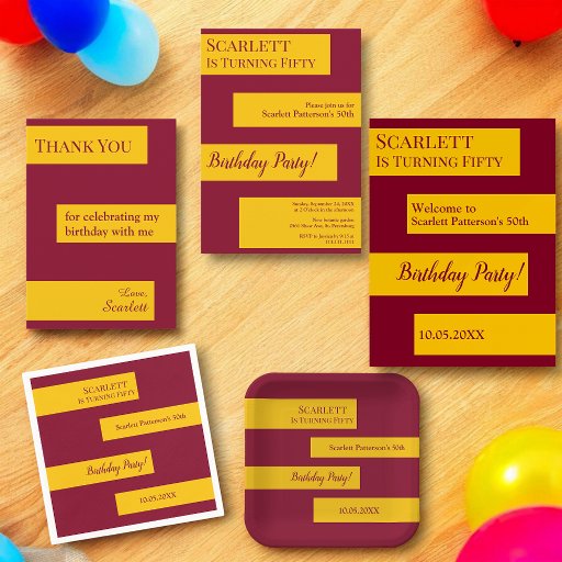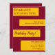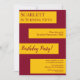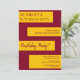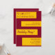 Este elegante convite de Burgundy e Aniversário de ouro é perfeito para um Aniversário moderno. o simples design apresenta uma elegante caligrafia burgundy em faixas de ouro num fundo burgundy.