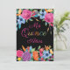 Floral Mis Quince Anos Aniversário com flores de fiesta. Essa design ousada e belíssima tem uma abundância de flores coloridas, roteiro elegante e tipografia moderna. A ilustração da aquarela inclui a peônia, a rosa, a fúcsia, o lírio e o verde em tons de rosa, roxo, laranja, amarelo, verde e azul. O modelo está pronto para você adicionar detalhes de sua comemoração de 15. Por favor, procure nossa loja para coordenar itens nesta coleção Quinceanera.