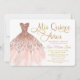Convidação rosada e dorada de "Mis Quince Años" con vestido rosa.