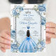 Convite Mis Quince Blue Floral Silver Crown Quinceañera