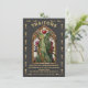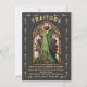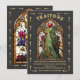 Convites de festa de mistério de assassinato "TRAIDORAS" inspirados em cartas de tarot. Apresenta um homem de vitral e mulheres com capas e armas em uma moldura de janela estilo igreja com um fundo preto texturizado falso claro. Detalhes em dourado falso. Perfeito para o Halloween, uma noite sob as estrelas, cósmico, horóscopo, gótico ou noite mágica mística de assassinato divertida. Toda a redação pode ser alterada. Dourado falso. Para fazer mais alterações, vá para Personalizar este modelo. Na parte inferior, você verá "Quer personalizar ainda mais este design? Clique em EDITAR usando a ferramenta de design. A partir daí, você pode alterar algumas das fontes e algumas cores, mover as coisas ou excluir o que for necessário.