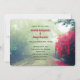 Um convite de casamento com uma bela fotografia. Um dia nebuloso com trilhas de ferro enroladas e uma folhagem linda e uma linda árvore vermelha. Uma imagem muito cênica e modesta.