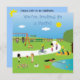 Convites de festas bonitos do aniversário de criança com uma ilustração colorida dos desenhos animados das crianças de raças diferentes, e seus animais de estimação, jogando junto e tendo um piquenique pelo lago/lagoa do pato no parque em um dia ensolarado do verão/primavera. Adicione os detalhes de seu partido na parte traseira - mude a cor do fundo, e a pia batismal se você gosta clicando no "personaliza-o" botão - cargas das cores & das pias batismais para escolher de. Você pode mover-se, re-size ou remover alguns dos objetos do design na parte traseira. Se você precisa algum auxílio em personalizar seu produto me contacta por favor através de minha loja e eu serei mais do que feliz ajudar.