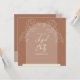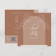 Maneira moderna e bonita de enviar convites a todos na sua lista. Este convite para o casamento tem um estilo de arco e apresenta um design floral. No verso do convite há um código QR para respostas, RSVPs e muito mais. Mostrado em Mcha Brown. Basta mudar o texto e o endereço da Web para atender às suas necessidades. Use a modelo para personalizar.