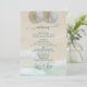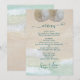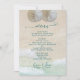 Cardápio de casamento elaborado e único com dólares de areia. Um fundo de areia de praia contém seu texto com o texto 'cardápio' no topo. Todas as opções do cardápio são adicionadas em um parágrafo usando texto impresso. A redação da amostra usa letras maiúsculas para cada seção do cardápio, como 'APERITIVOS'. Os primeiros nomes do casal e a data do evento estão na parte inferior sobre a espuma do mar chegando à costa. Este design também está disponível como download instantâneo.