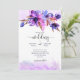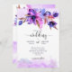 Convite Modelo de casamento de flores de aquarela azul púr